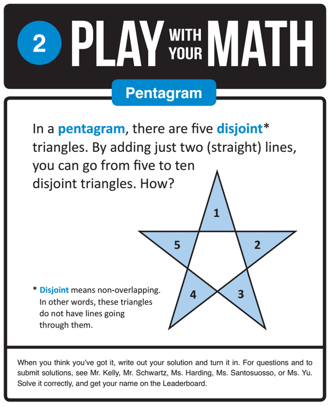 - They’re social, or at least they’re better when people play together. It is not as obvious that this problem would be more fun with other people, but it definitely was. We posted this problem on a Friday, and I had 5-6 students hanging out after-school until around 5:30 PM working on the problem. Two of the students solved it, and their celebration and subsequent trash-talk was priceless.